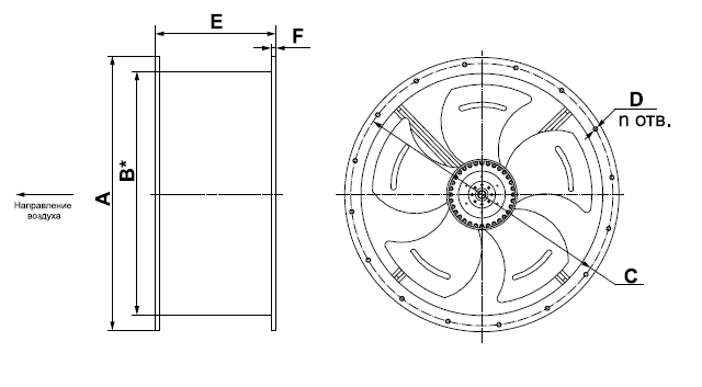 | Модель вентилятора | Размеры, мм | ||||||